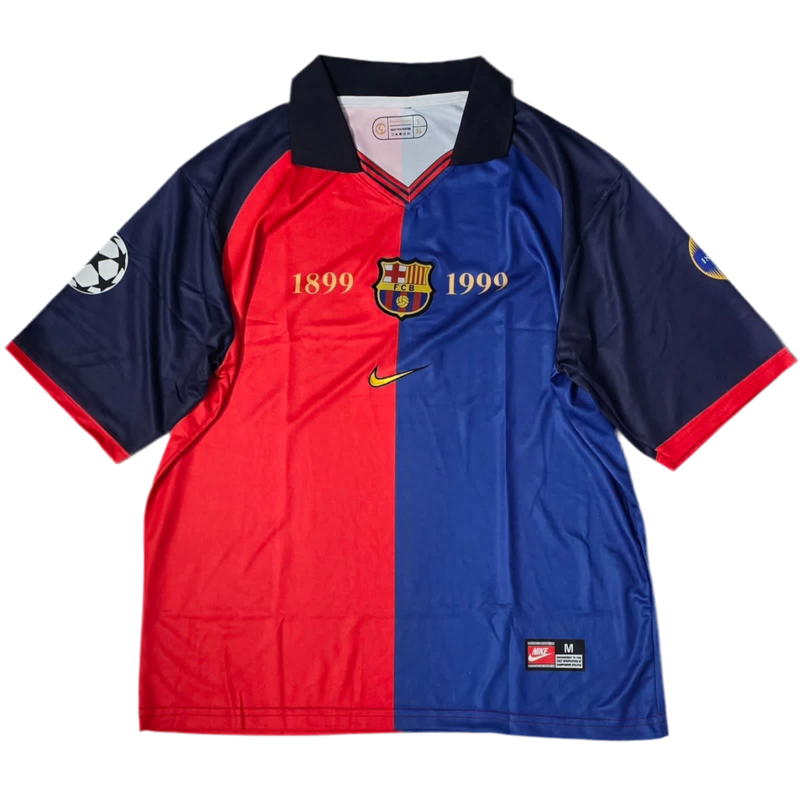 This iconic jersey commemorates FC Barcelona's centenary, celebrating 100 years since the club's founding in 1899, as indicated by the "1899 1999" text on the chest.